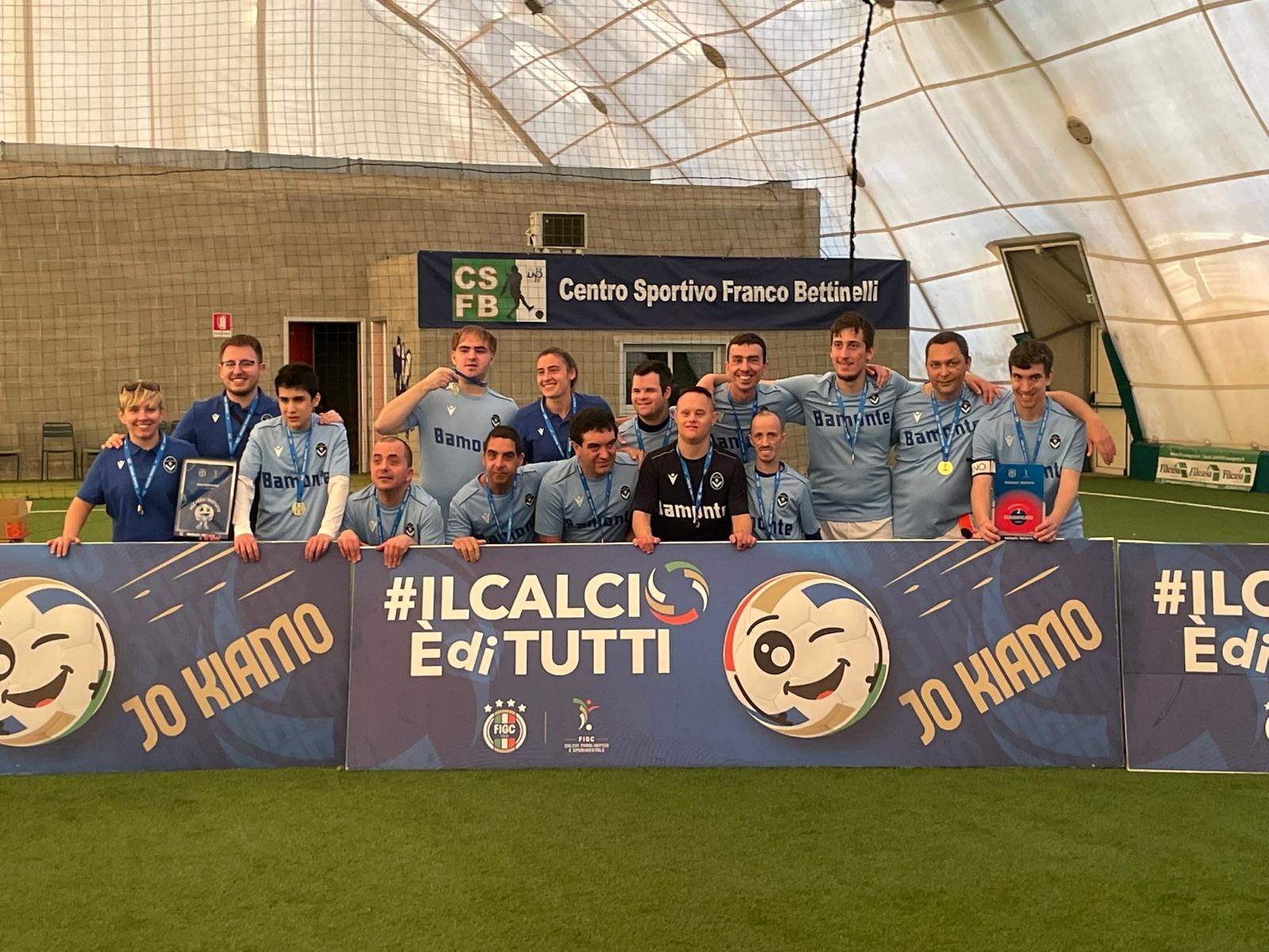 Siamo lieti di comunicare che l’ASD Filippide Lombardia, che in gemellaggio con la Giana Erminio partecipa al campionato di 3° livello nei tornei regionali ed interregionali della competizione “Il Calcio è di Tutti” organizzata dalla Divisione Calcio Paralimpico della FIGC, ha concluso il campionato 2025/26 al 2° posto in classifica, conquistando il diritto di giocare le semifinali regionali contro Tukiki B Cagliari Calcio. La gara si è disputata sabato 28 marzo al Centro Sportivo Bettinelli di Milano, è finita 4-4 ai tempi regolamentari e La Filippide–Giana Special vincendo 6-5 ha conquistato finale con la vincente dell’altra semifinale, Arcobaleno A AC MONZA, che aveva battuto la Ticinia Novara: anche in questo caso la partita è finita in pareggio, con un tiratissimo 3-3, ma i calci di rigore hanno premiato gli avversari 5-4.